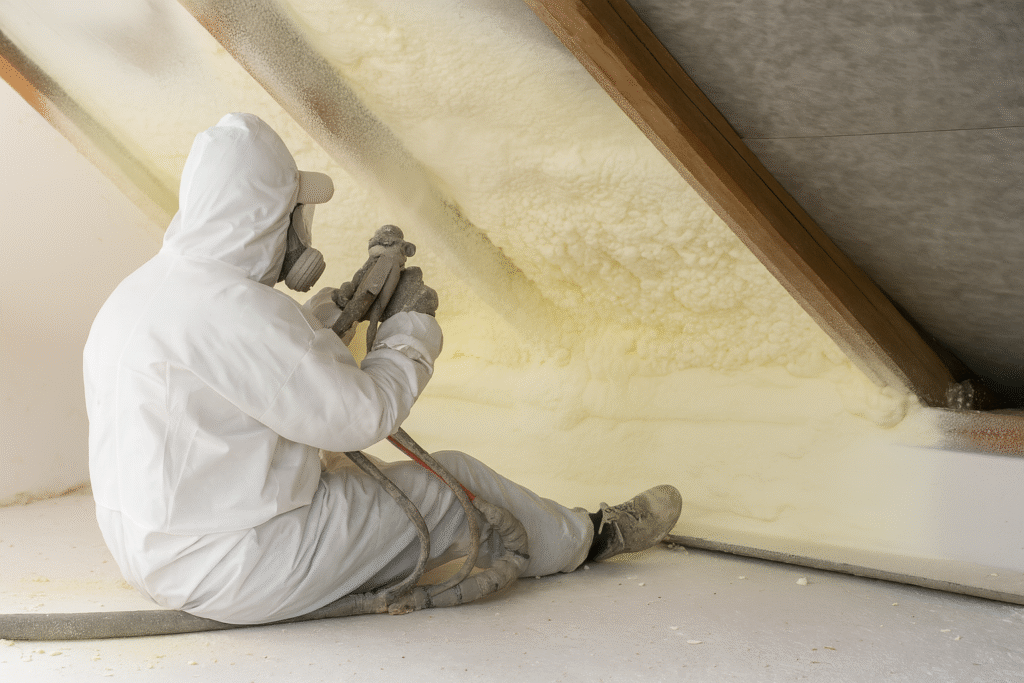 Pulvérisez une mousse rigide (polyuréthane) qui adhère et comble microfissures et joints : étanchéité millimétrique et performance thermique maximale.